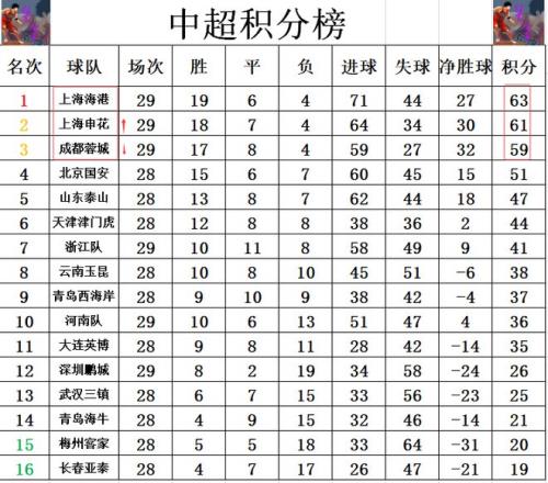 中超最新积分战报5轮1胜!成都从领先到退出争冠上港多申花2分
